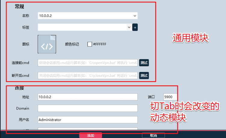 常规部分是所有协议通用的,所以连接被放在常规下方另外有些协议可能直接就不需要填IP地址,比如说: