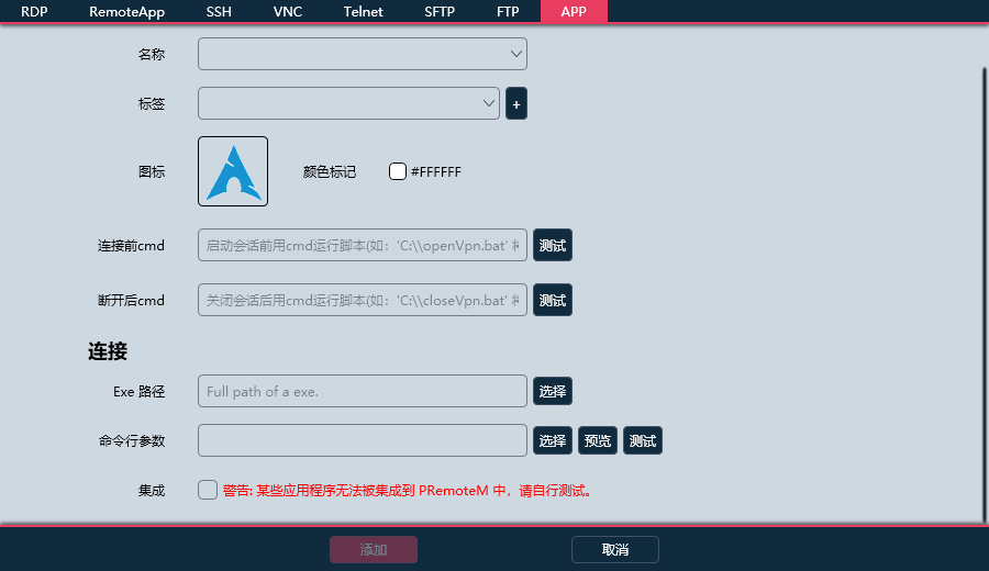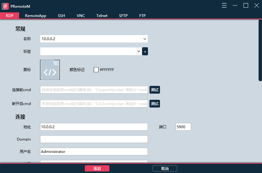 一般情况下远程连接的连接信息是最主要的, 我刚安装的愣了一会才发现连接信息是在下方, 填写连接信息后又发现得填写连接名称才能完成连接, 如果把连接信息放在连接名称下面体验会好点.