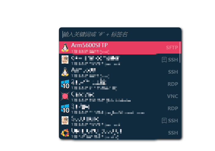 下图中我搜索第一个SFTP,然后选择第二个SSH回车,进入的是第二个,而不是你描述的第一个。