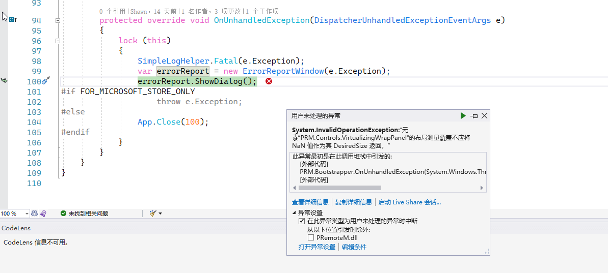 日志显示 MainWindowViewModel.cs:line 343 有 Arithmetic operation resulted in an overflow.