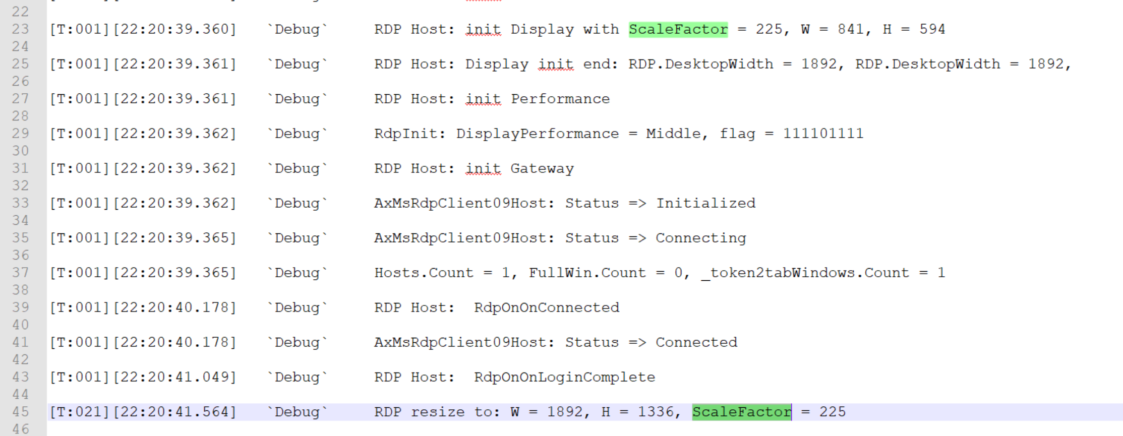 RDP Host: init Display with ScaleFactor = 225, W = 841, H = 594