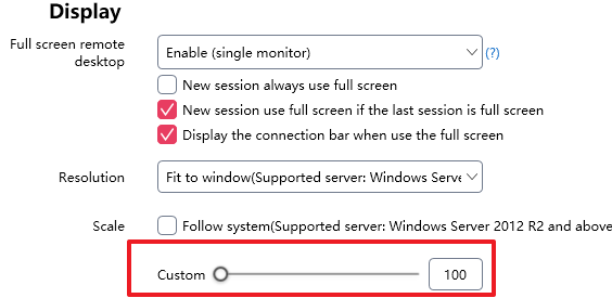 When I open the first RDP session, the new window always comes up in the middle of the screen. Each time I have to use the mouse, drag the window to the upper left corner, then make it high enough to get rid of the scrollbars.