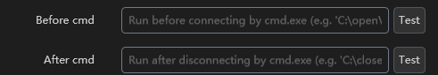 I use this feature to run a script that initiates a ssh connection with tunneling of the rdp port. The "After cmd" script kill this connection afterwards.