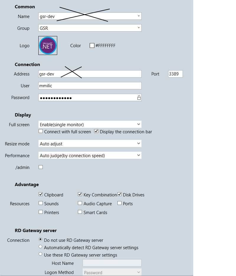 Another point I found, from time to time I use a secondary account to connect to the server. So far I have opened a classic RDP connection to the server as a workaround. As an alternative, there would be the possibility to create the server twice and store the other credentials there, but makes the whole thing not really comfortable.