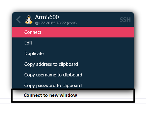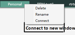 Connect to new windowto let user choose where the new connection should be placed.By this option, a new tab window will created and the new connection (sigle connection by click single session / all connections open by a tag) will be placed in this new window.
