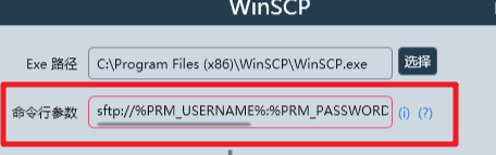 sftp://%PRM_USERNAME%@%PRM_HOSTNAME%:%PRM_PORT% /privatekey=%PRM_SSH_PRIVATE_KEY_PATH%参数测试通过
