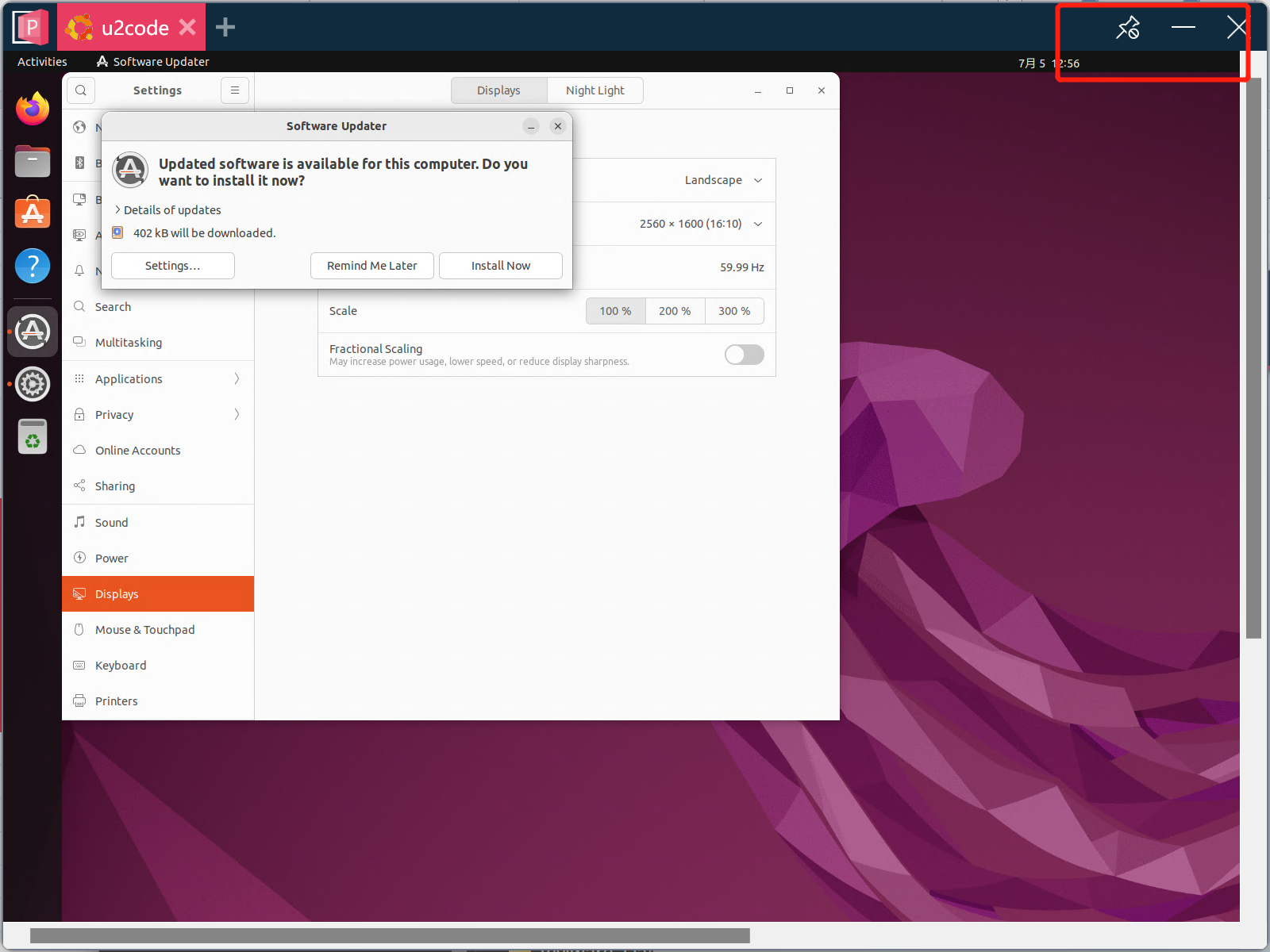 DebugRDP to FullScreen resize ParentWindow to : W = 2048, H = 864, while screen size is 2560 × 1080, ScaleFactor = 125[T:001][14:20:10.670]