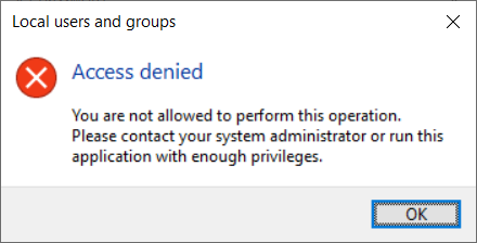 Ordinary user cannot change own password when running the program without administrative priviledges (without elevation).