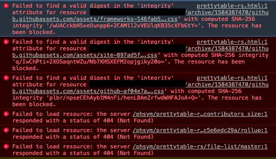 While archiving the github page https://github.com/phsym/prettytable-rs or any gist page / github page, the JS / CSS doesn't load, only the HTML so the webpage appear broken.