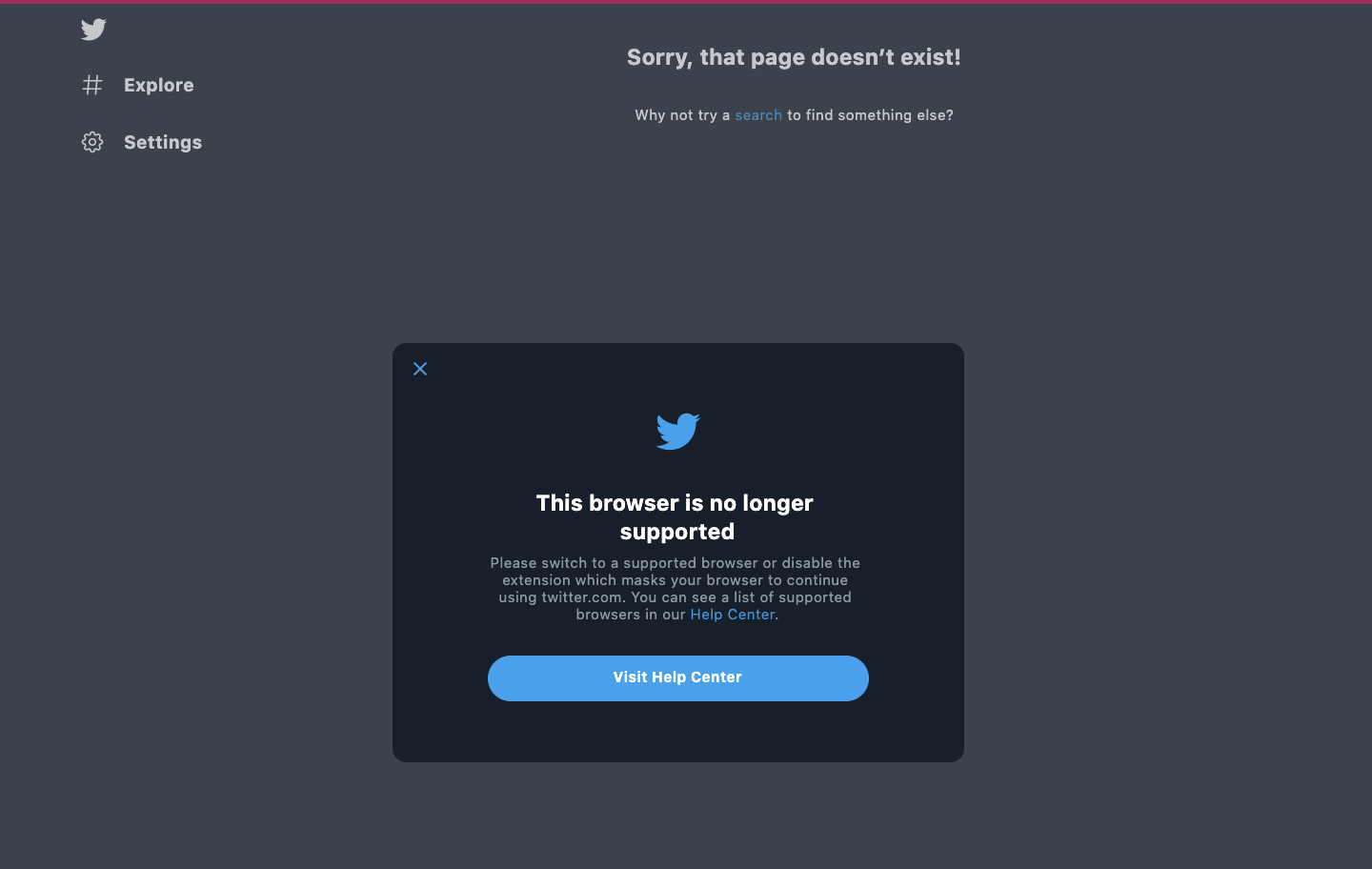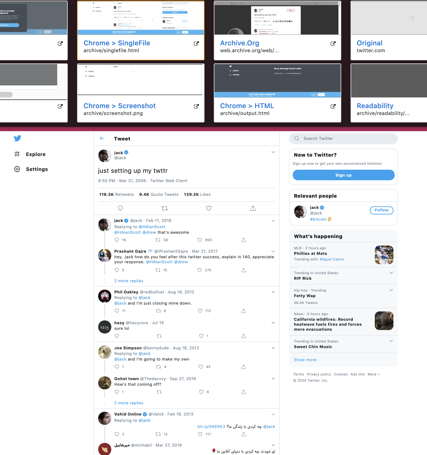 archivebox, i.e.The task seems to complete successfully, other than an irrelevant youtube-dl error (see output attached to bottom), but Twitter seems to be blocking Chromium (or whatever it is that does the WARC) based on browser agent, showing an error popup with "This browser is no longer supported. Please switch to a supported browser or disable the extension which masks your browser to continue using twitter.com"