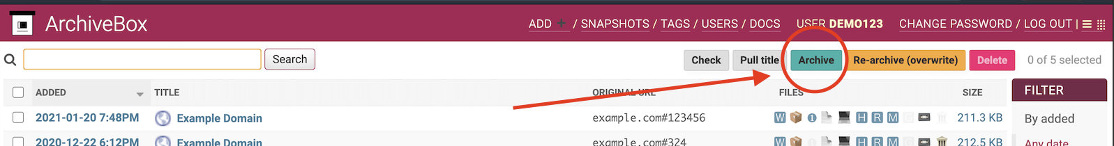 Archivebutton in the UI is also equivalent to runningarchivebox updateon itNot yet, follow these: