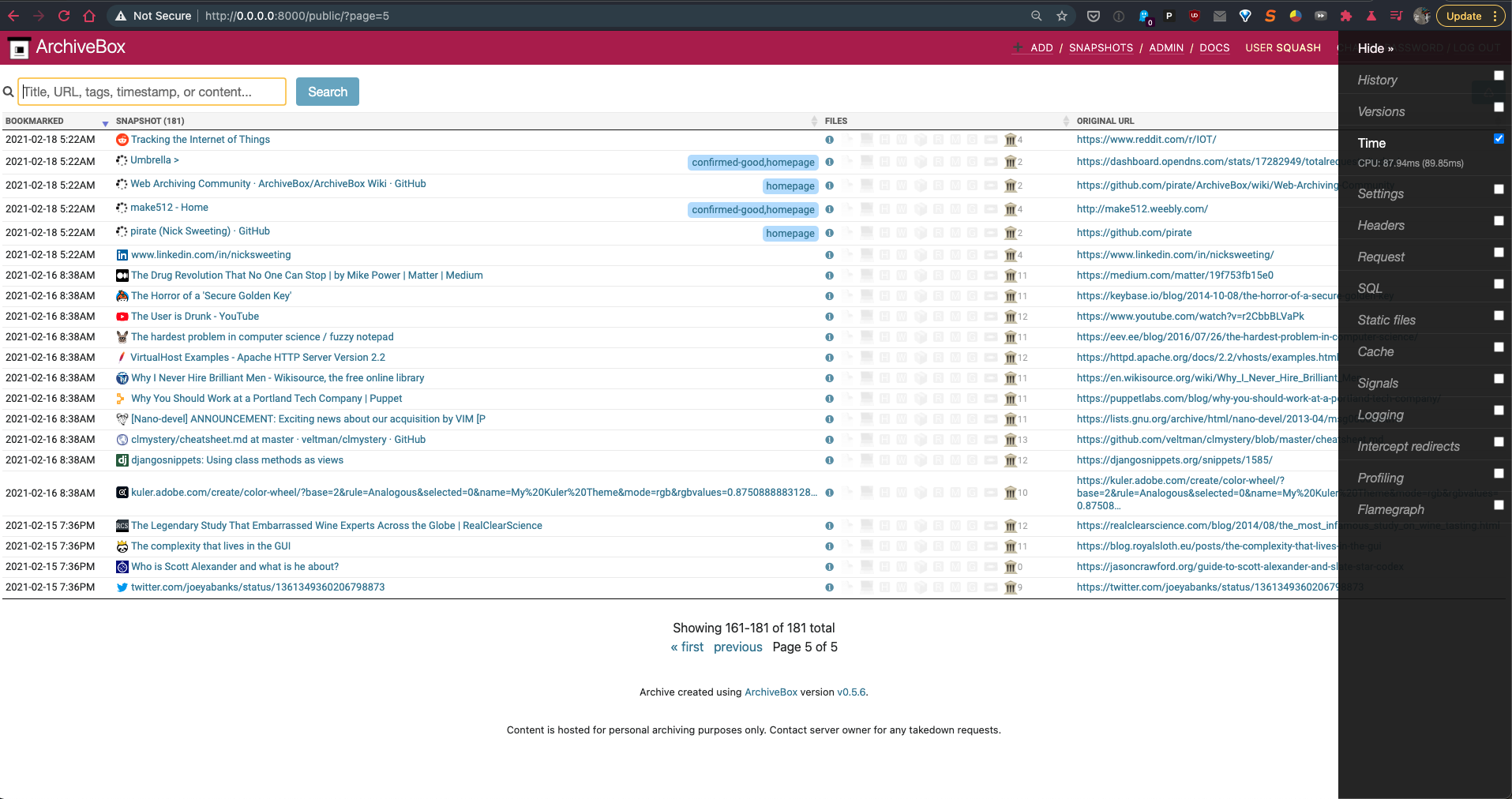 cumtimeis spent insnapshot_icons:ArchiveBox version