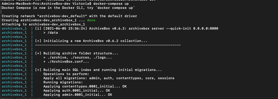 docker-compose run archivebox init --setupAnd when I tried to create an admin superuser, I must've accidentally run the command again?