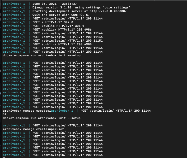 archivebox_1 | "GET /admin/login/ HTTP/1.1" 200 11144keeps popping up.Did I screw something up?