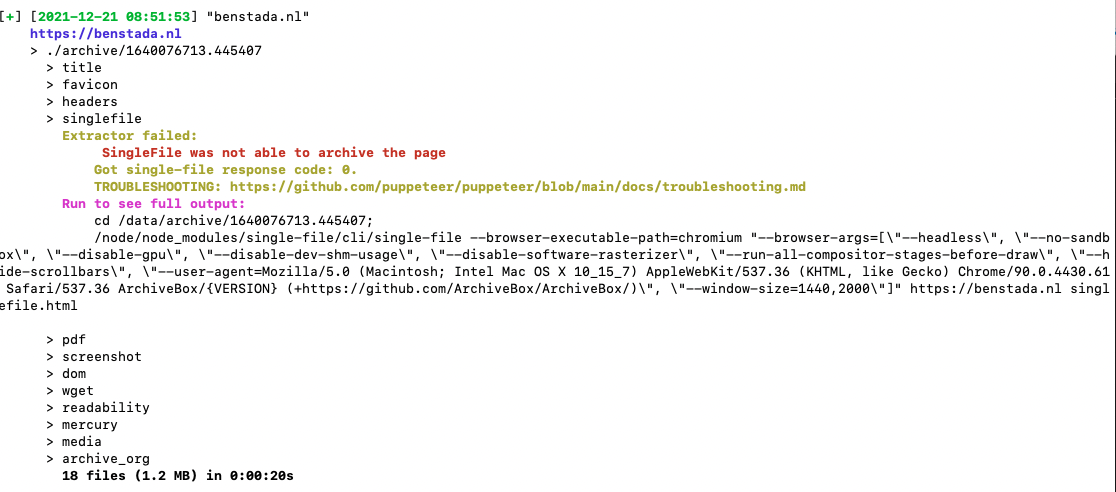 singlefile Extractor failed: SingleFile was not able to archive the page Got single-file response code: 0.
