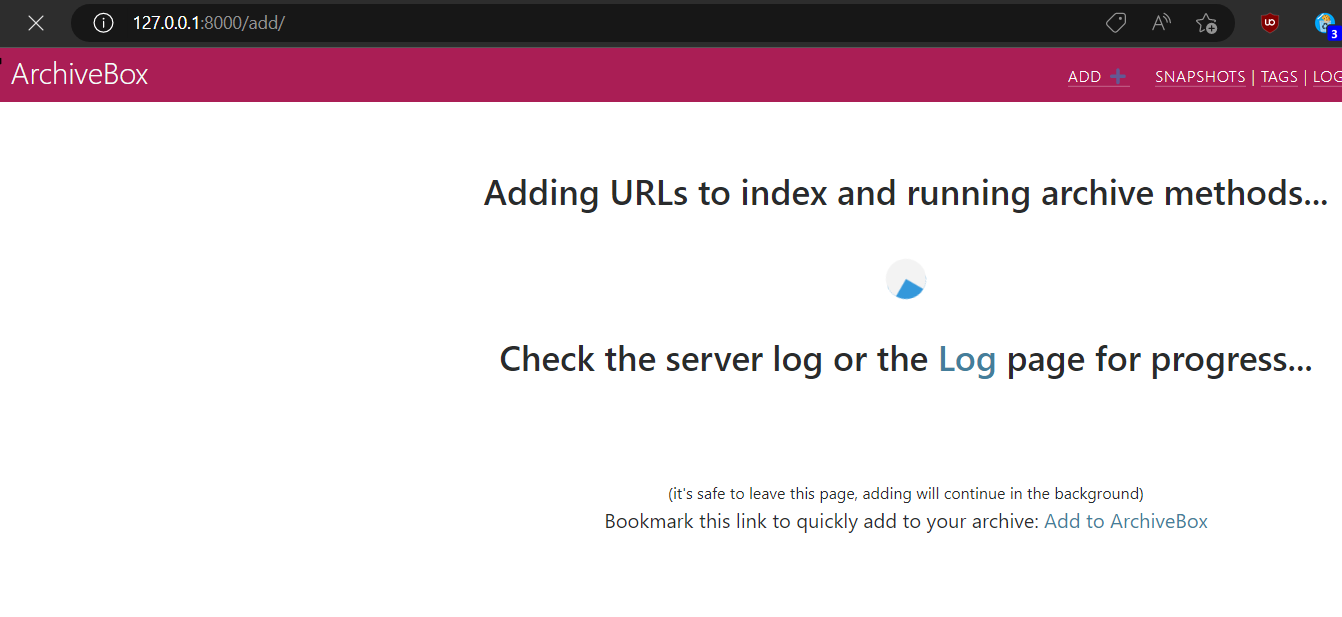 after inserting url and leave everything in default and click on Add URLs and archive button it loads for a few moments then it shows me the message : A server error occurred. Please contact the administrator.