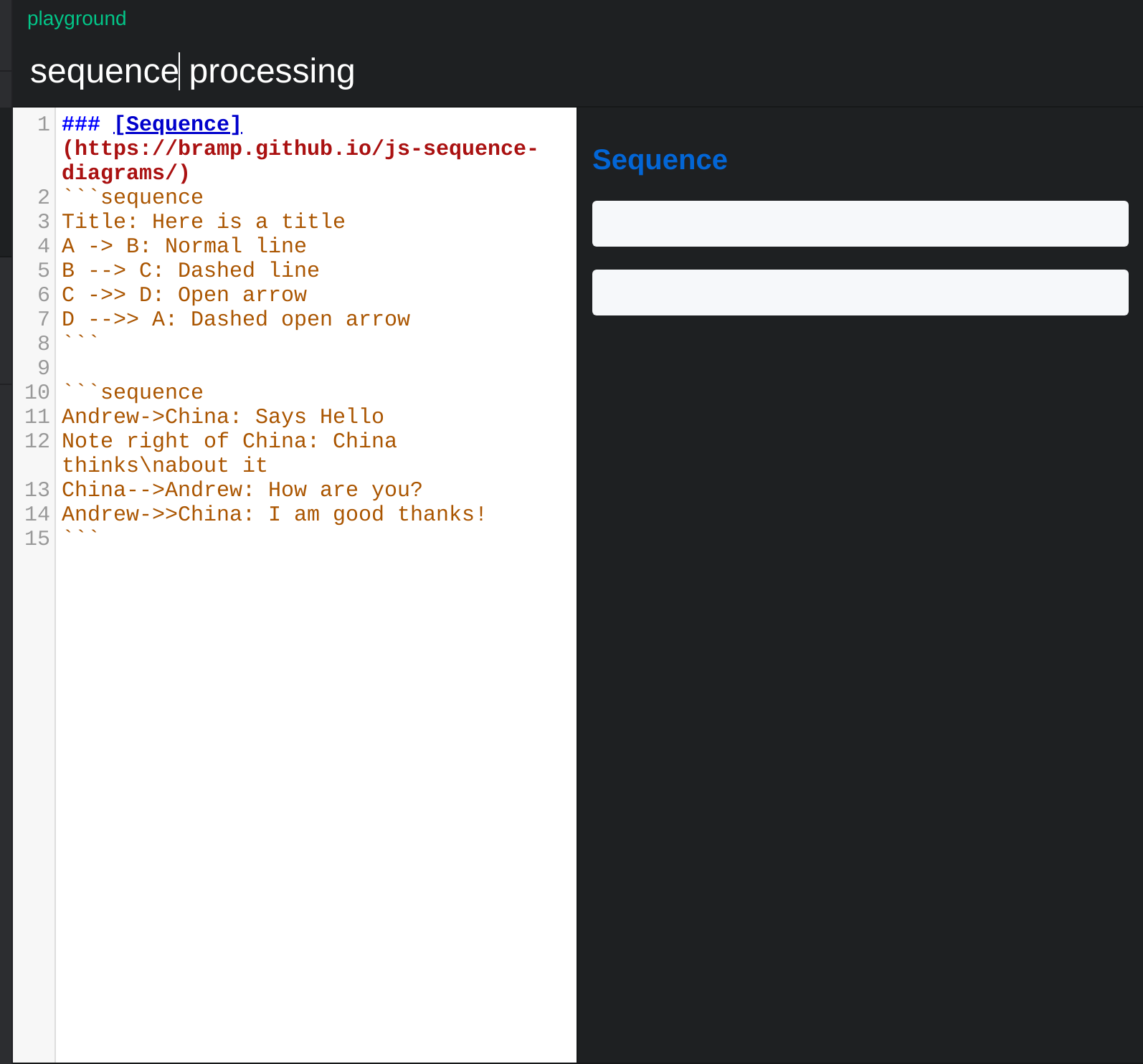 Inputting the sequence diagram specification in boostnote, not rendering the sequence diagram.