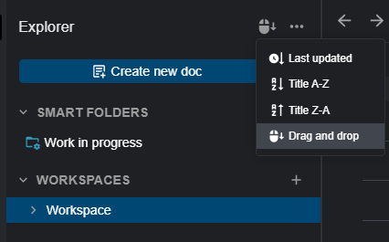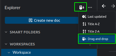For workspace folders, you mean different workspaces in sidebar? I think this will be replaced with plain folders so they will be orderable as well. So please try to select drag and drop mode in web app (browser), and then try ordering notes/folders, let me know of any further issues and browser name and version for additional info.