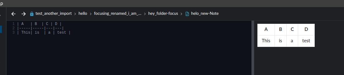 Create a new file with a markdown table (like in the picture) in a local space