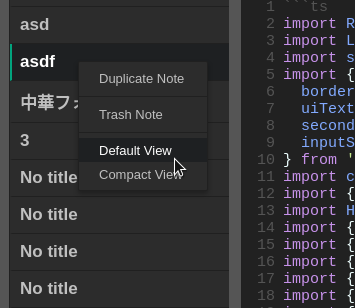 2d0177cRefactor style of NoteDetailf255678Change contextmenu icon017c30cRefactor NoteItem component8626607Implement compact menu list stylea0f1f36Disable global keybinding8e8a047Rename noteListing option to noteListViewce3d69dAdd note list view selector to general preferences tab📊 Changes