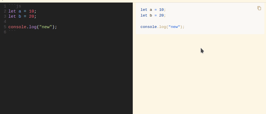 This added support for copy button for markdown codeblock