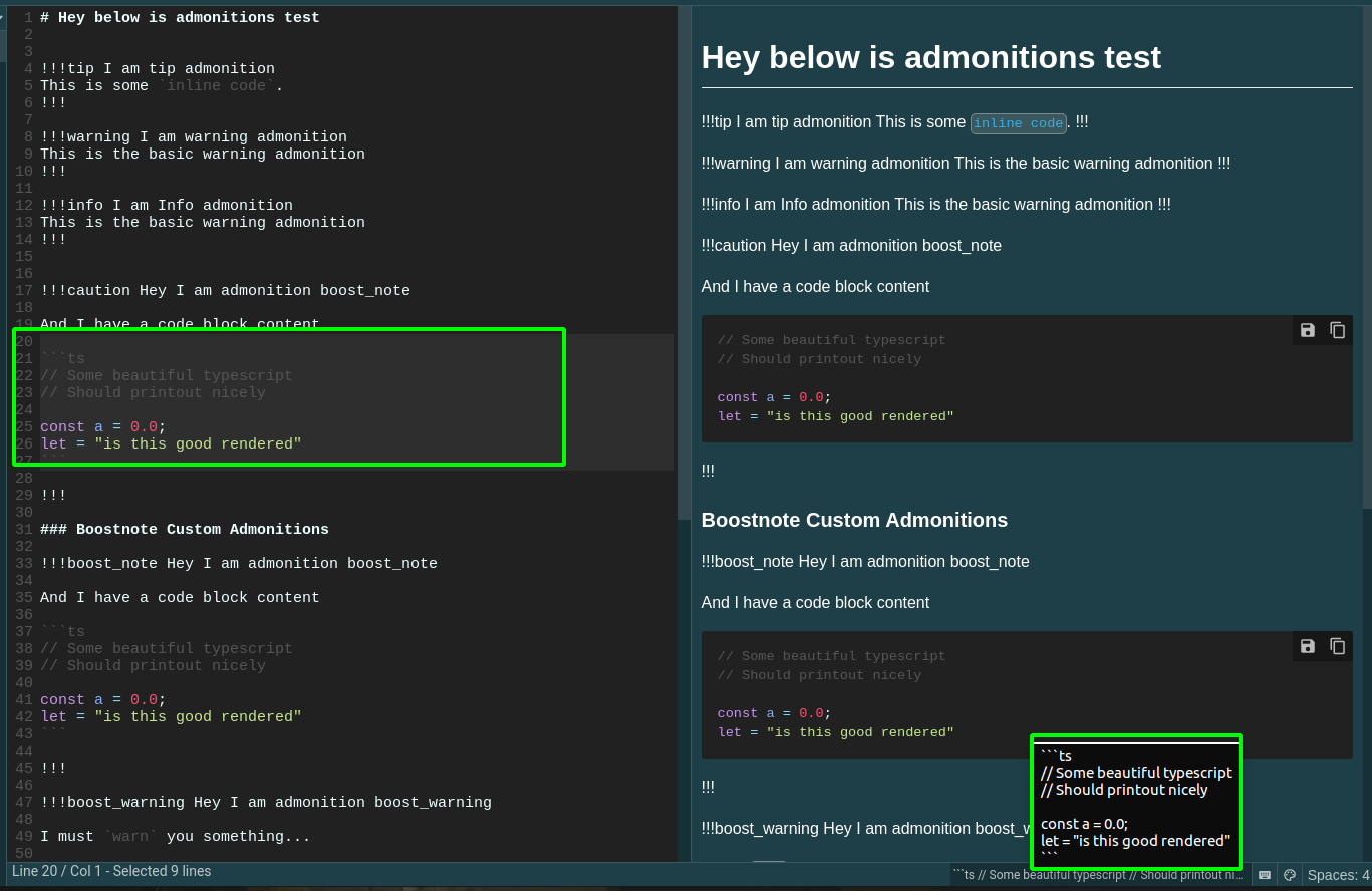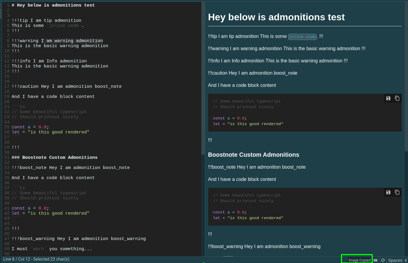 Simple copy (works for code snippets, code blocks, any copied text outside or inside boostnote)