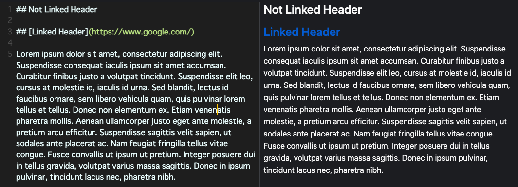 Currently, when the header has a link, it won't appear when it's in preview mode. (In split view mode is fine.)