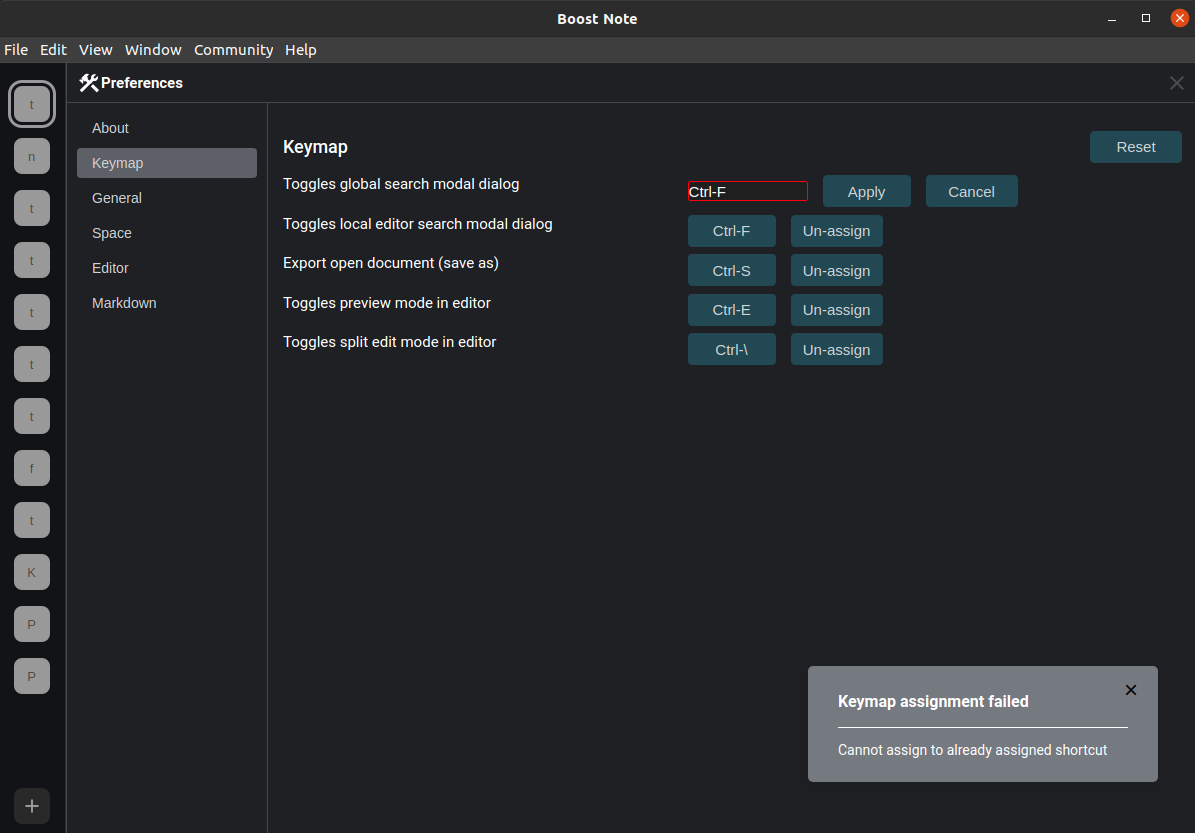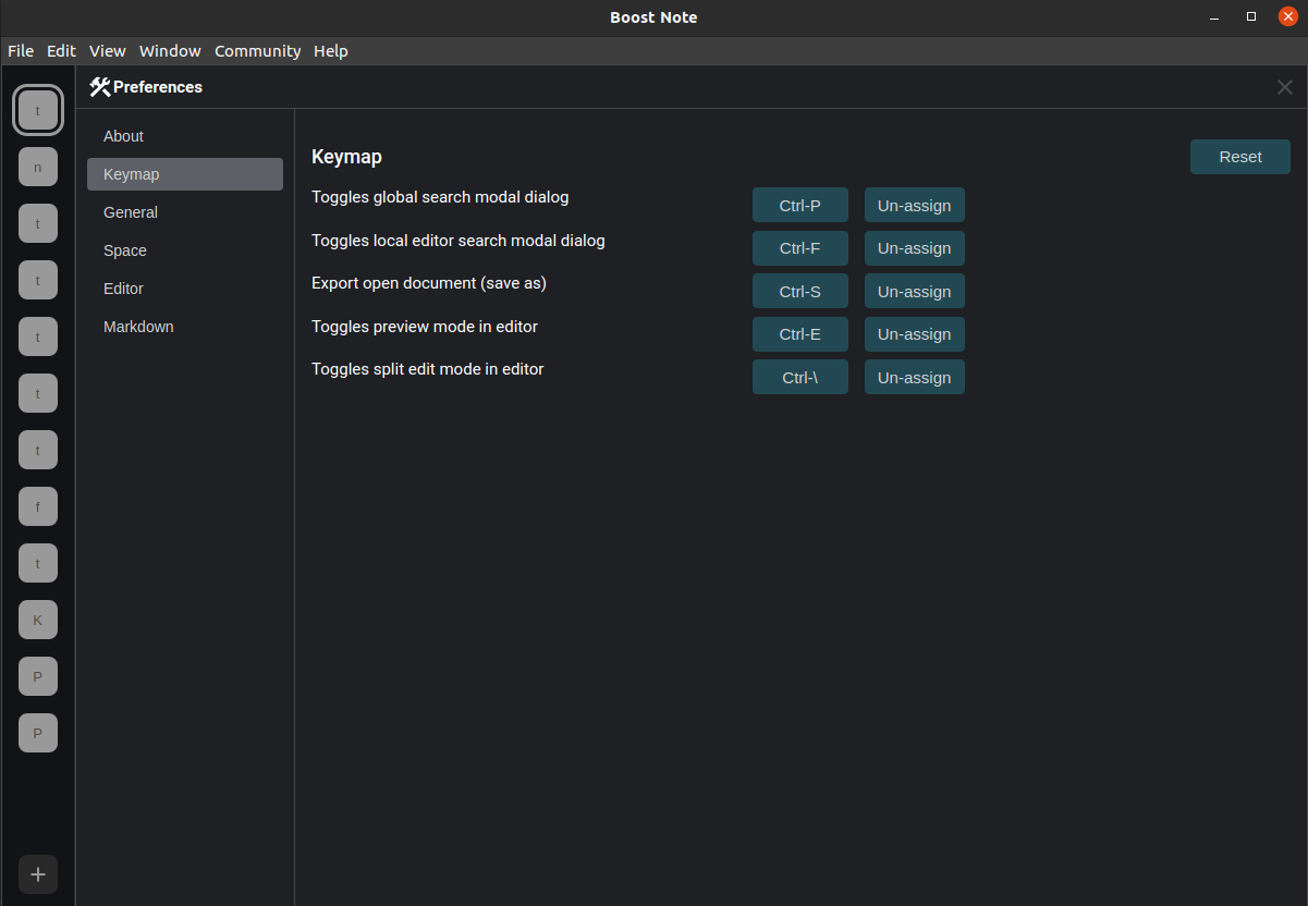 0037aafAdd basic keymap handling874f2d1Add types for reviver and replacerfe4c45aFix reset button non-immediate component update2fd1335Fix electron only API callscdef64bAdd keymap updating instead of menu template3725b2eDo not allow null in keymap preferences5d98977Add support for global search modal toggle📊 Changes