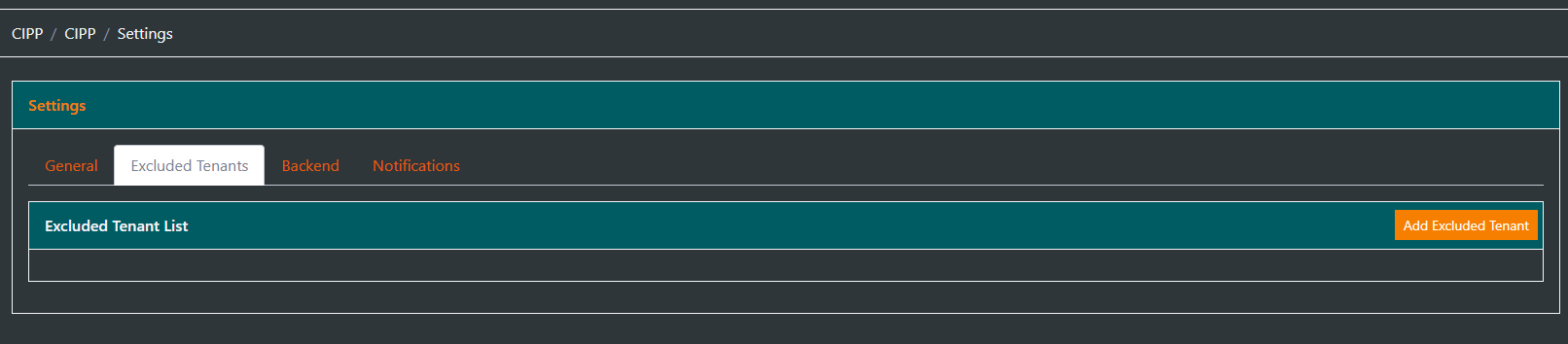 Page: CIPP > CIPP > Settings> Excluded Tenants