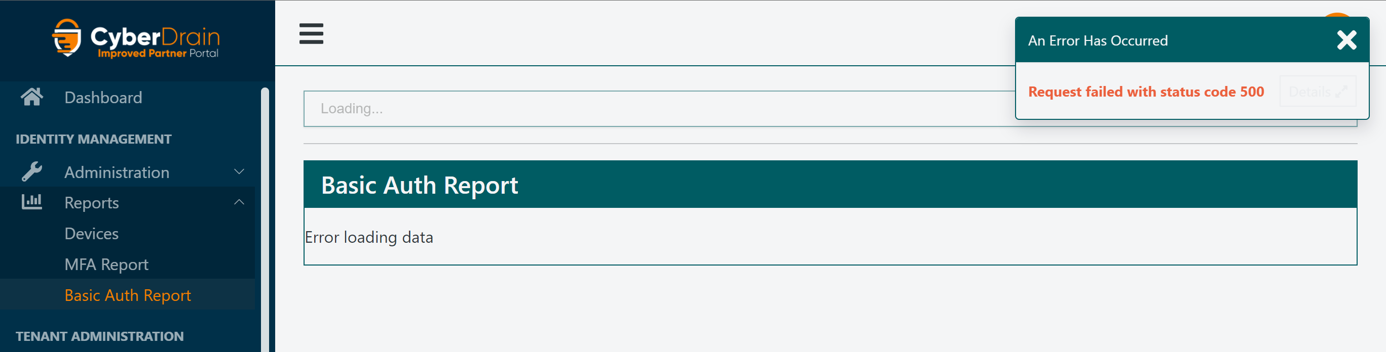 Error 500 thrown by Basic Auth Report page if previously All Tenants was selected as current tenant