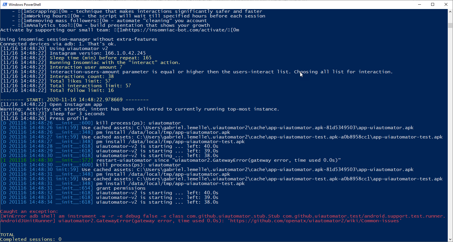 Original GitHub issue: https://github.com/alexal1/Insomniac/issues/183