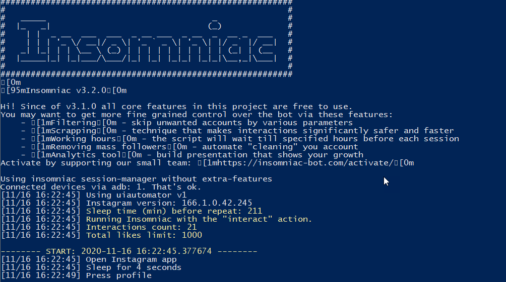 Original GitHub issue: https://github.com/alexal1/Insomniac/issues/184
