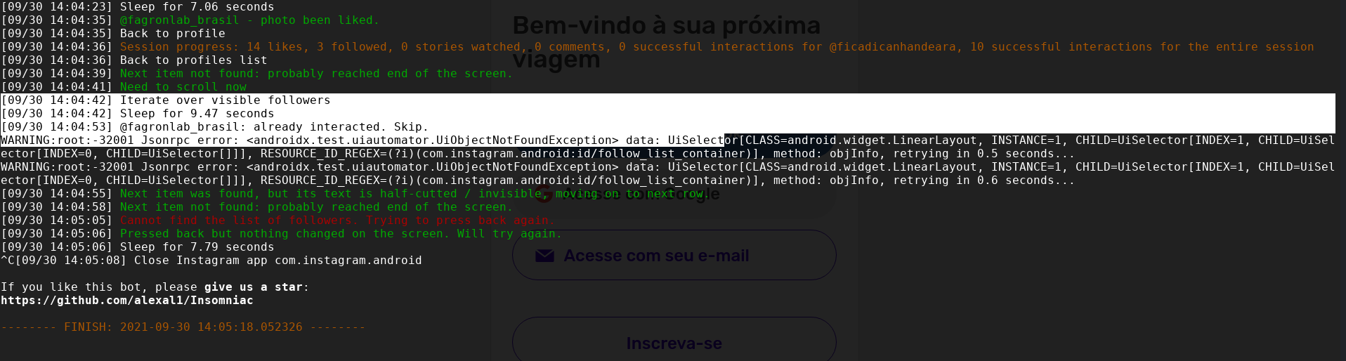 Original GitHub issue: https://github.com/alexal1/Insomniac/issues/388