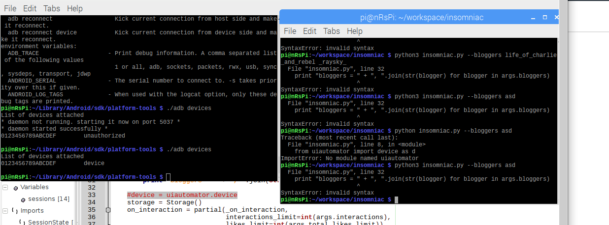 python tmp.pyand that opens the Clock application.So uiautomator is working fine