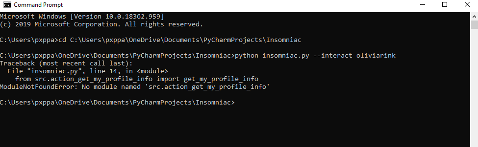 edit: I tried simply moving the insomniac script into the src folder so they are in the same directory but that solution failed me