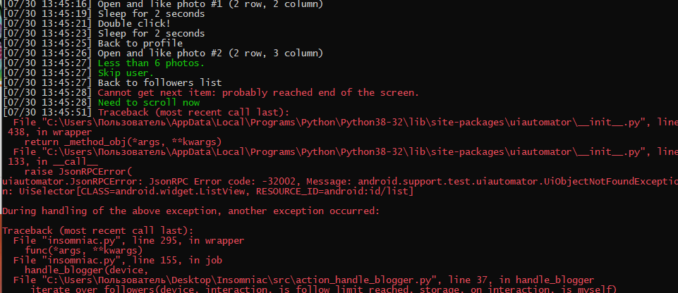 Original GitHub issue: https://github.com/alexal1/Insomniac/issues/73