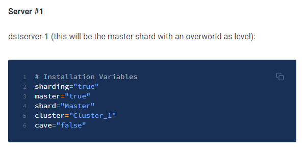 I have been attempting to follow this LGSM guide for installing a Don't Starve Together server with multiple "servers" on a single cluster - a caves and overworld server. It mentions to configure the per-server