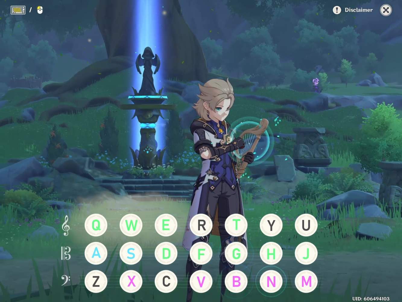 on the pc version the lyre is mapped to these keys (not my screenshot or UID)