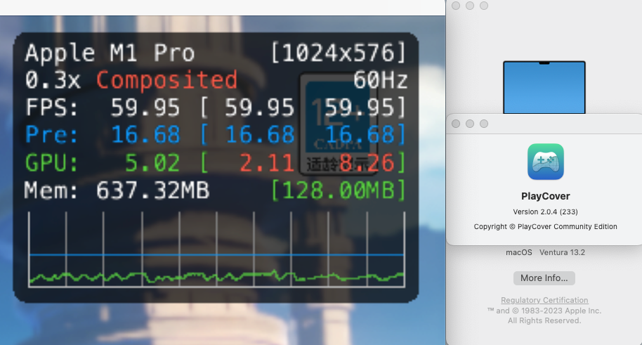 test genshin on playcover 2.0.4 + macOS 13.2 vs. genshin on playcover 2.0.3 (or 2.0.2) + macOS 13.1