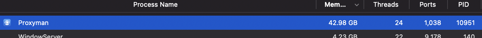 Just exported a domain and it basically went up to 40+GB of RAM using ProxymanLog. It was previously only 1GB+ iirc. Not sure how it can exceed 40GB+ but is it possible to make it such that it doesn't push the whole thing into memory eating into swap memory and instead do the processing piecewise? It makes the whole laptop lag when I export. I'd rather Proxyman process the export a bit slower and make the laptop usable, process cancel-able, with progress bar.