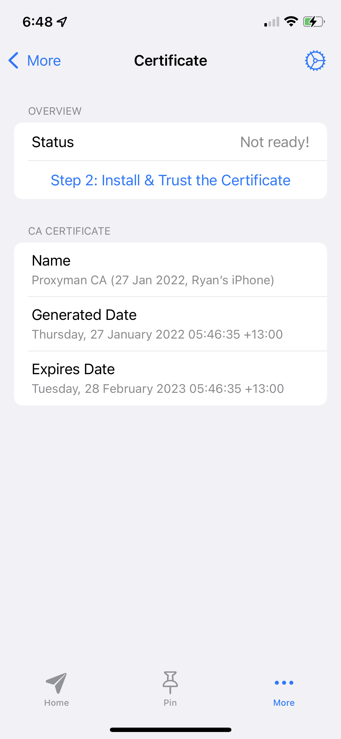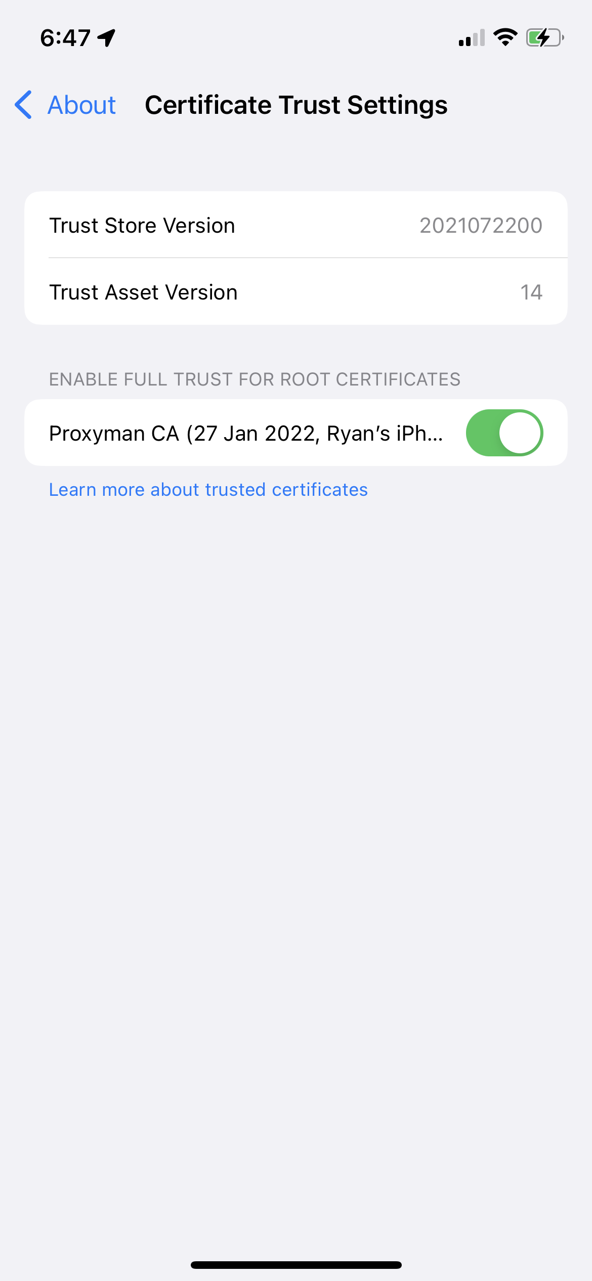 Certificate to install and be detected inside of Proxyman.