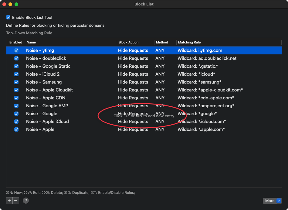 When there are no existing rules in the Block List, there is an empty state message that prompts the user on how to add a new entry. This message is not removed when rules are imported.