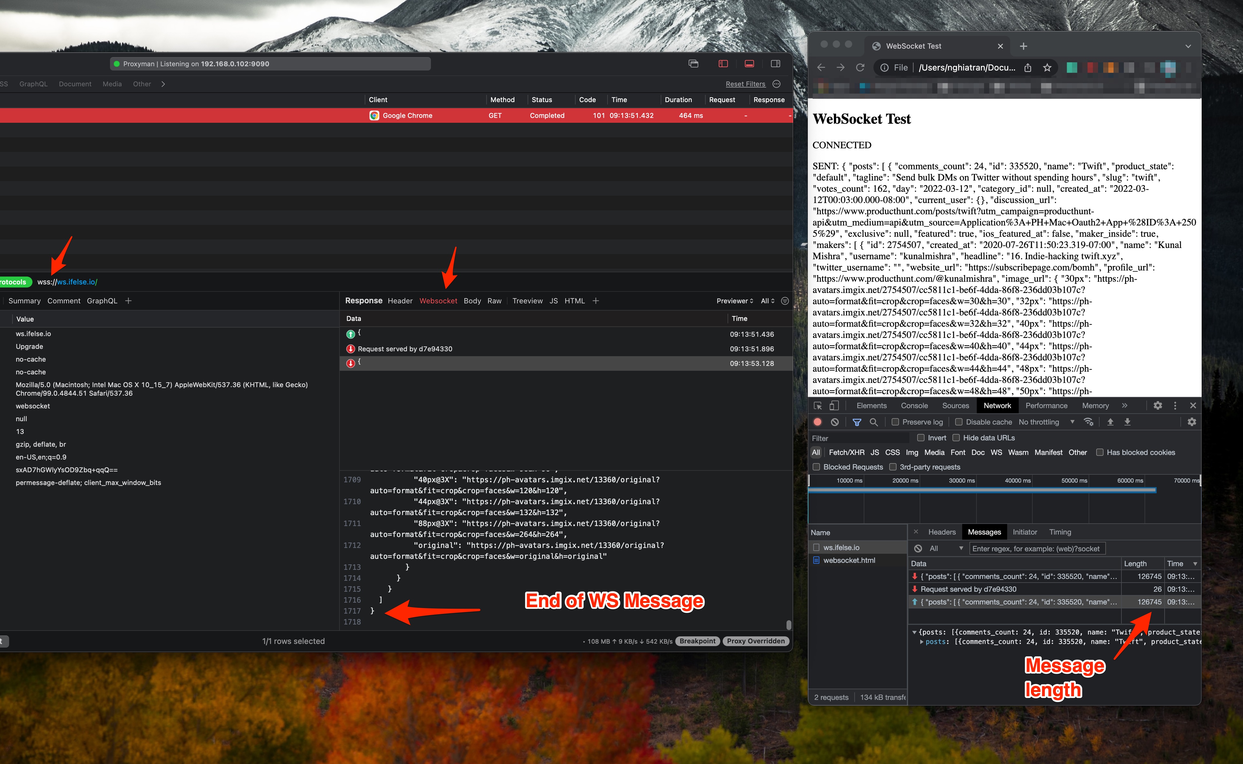 As you can see, Proxyman displays the full WS message, which lengths 126745 bytes. I don't see any unexpected break?