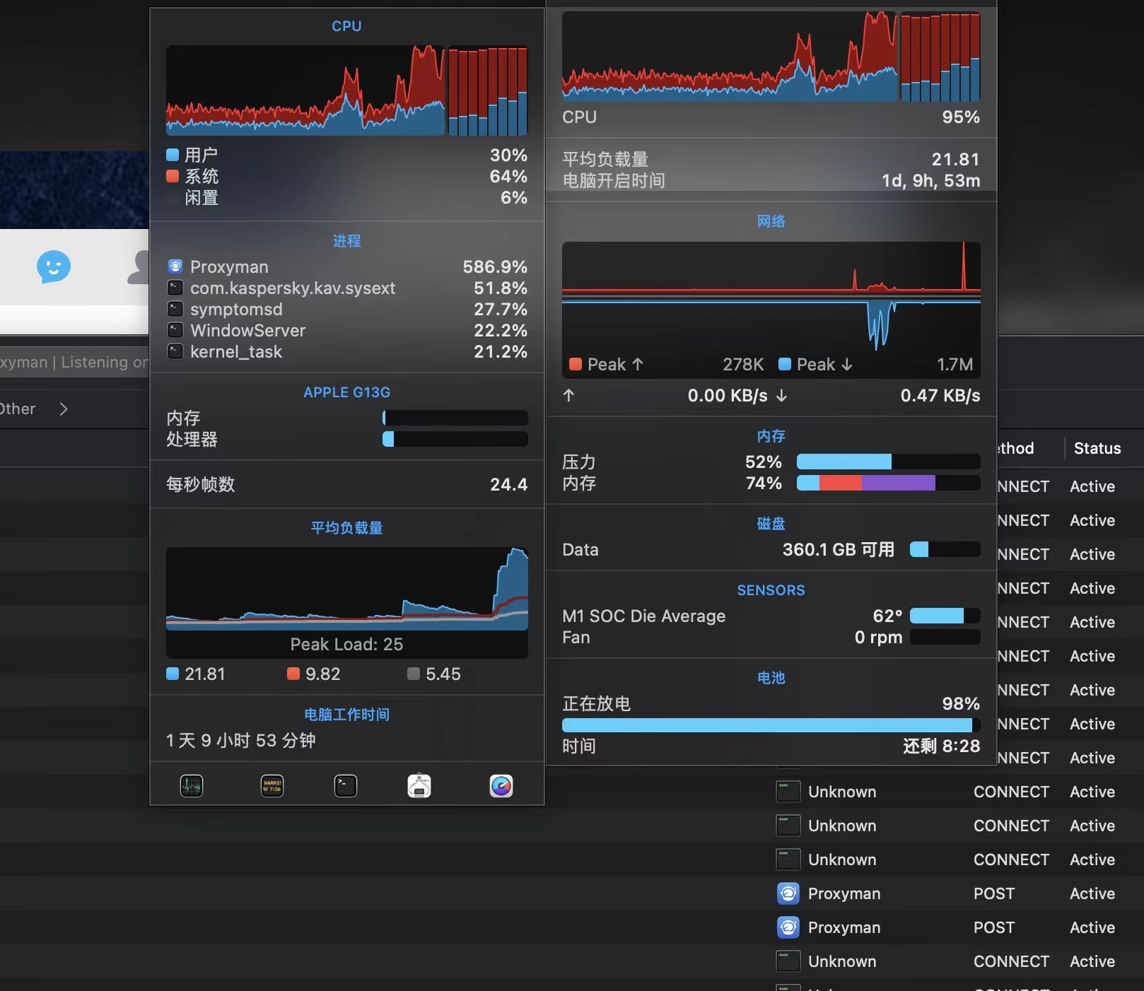 After installing Kaspersky Internet Security, as long as proxyman is opened, requests will be processed frantically, resulting in full CPU usage. After closing proxyman, it will return to normal.