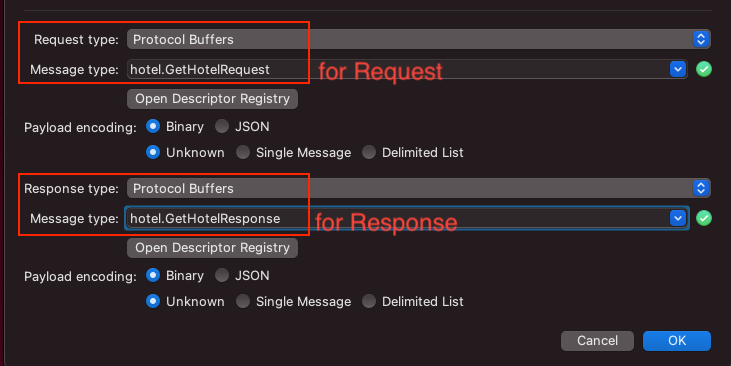 [GH-ISSUE #1281] [Feature Request] Set different protobuf message type for request and response of same url #1274