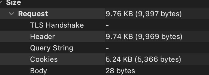 I expect to find the total of the request, as happened with Charles, instead I find only the body size