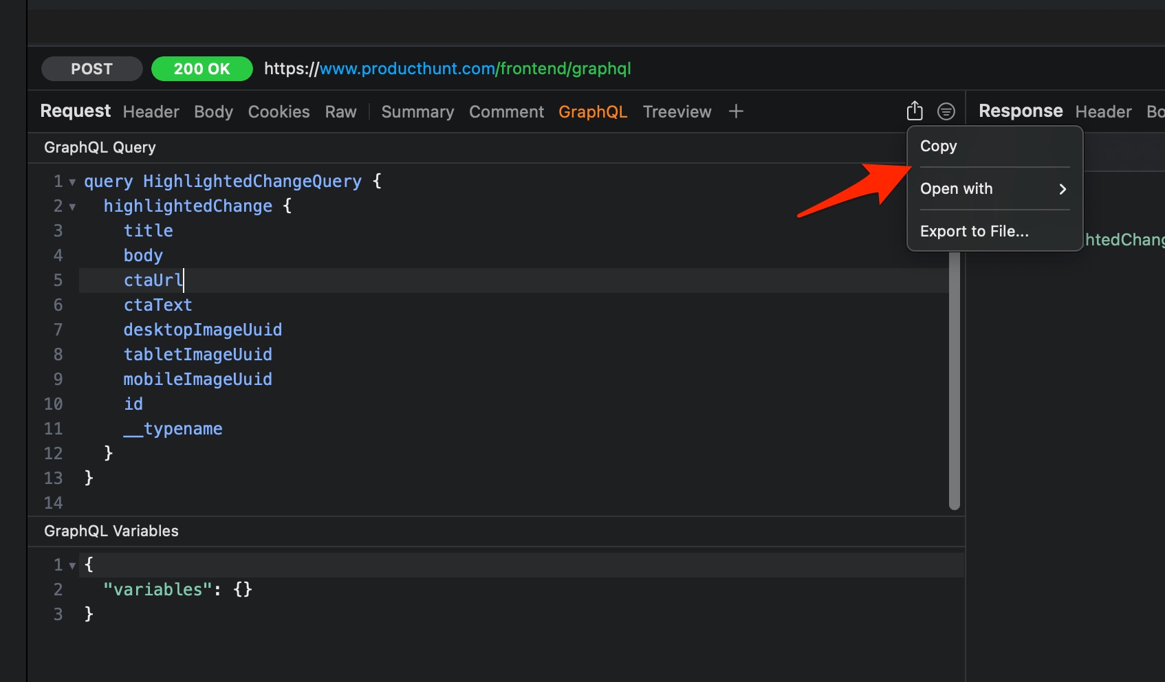 Some GraphQL customers would copy the GraphQL Query and the Variables at the same time. However, on the latest build, they have to Copy + Paste twice.