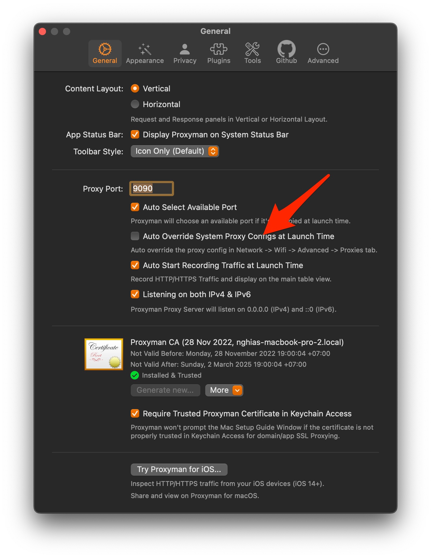 [GH-ISSUE #1483] Is there a way to always start proxyman with "Proxy overriden" set to false? #1475