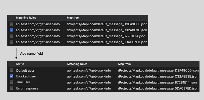 I suppose the Name Column for Map Local and Map Remote Tool. For the rest tools (Breakpoint and Blacklist) I would support later since I'm refactoring the UI.