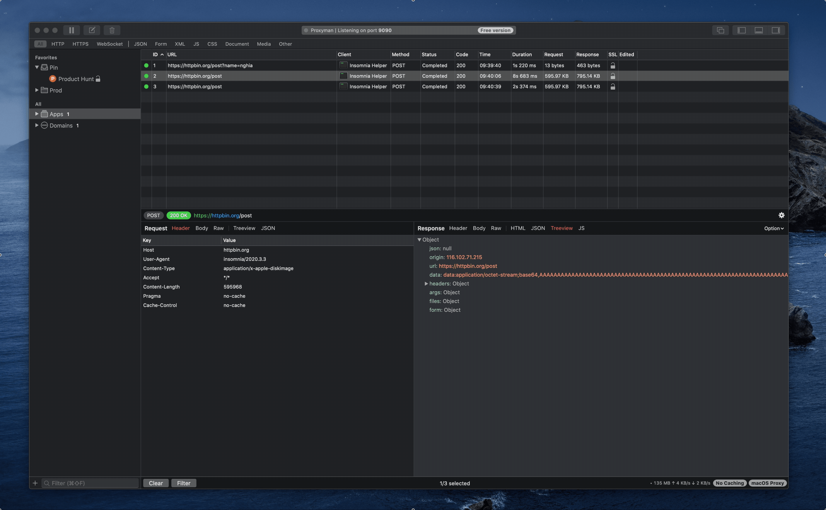 Notice the wait with no spinning cursor or any indicator that Proxyman is loading the payload